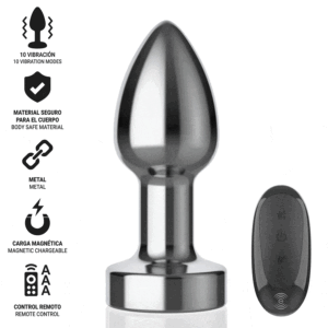 INTENSE – PLUG ANAL 10 VIBRACIONES METAL EN FORMA DE DILDO CON CONTROL REMOTO