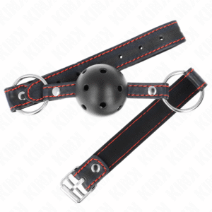 KINK - MORDAZA DE BOLA 4 CM TRANSPIRABLE CON DOBLE REMACHE DE CUERO 62 x 2.5 CM AJUSTABLE 42-58 CM