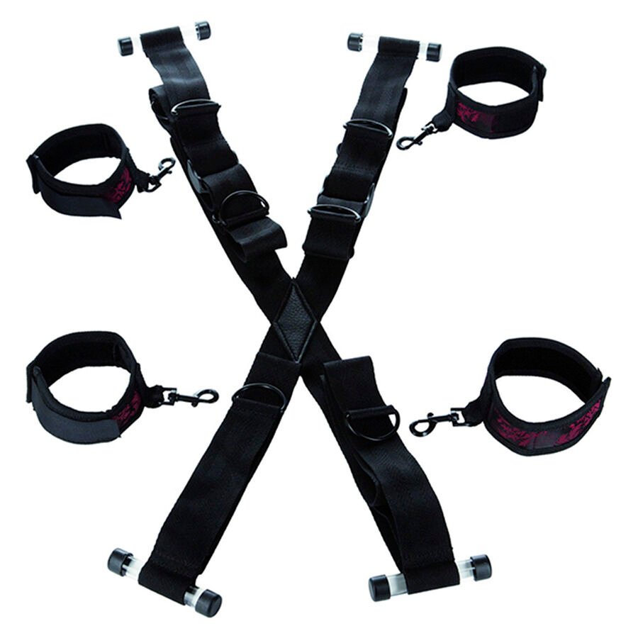 Lleva el bondage a nuevas alturas con la Cruz para Sobre la Puerta Scandal®. Este sistema de sujeción tipo cruz se instala rápidamente: simplemente coloca los resistentes ganchos sobre cualquier puerta, sujeta las muñecas y los tobillos de tu pareja con las suaves esposas rojas y negras y prepárate para ver su cuerpo completamente expuesto y vulnerable. Los cierres de velcro ajustables garantizan un ajuste cómodo y ceñido, mientras que los cierres universales permiten un reposicionamiento rápido para un juego sin interrupciones. Tanto si buscas una dulce sumisión como una seductora dominación, esta cruz para sobre la puerta te permite vivir tus fantasías más salvajes. Separa sus extremidades para un acceso completo o flexiona sus piernas para ángulos más profundos e íntimos. Con cada movimiento restringido, tu pareja temblará de anticipación, rendida a tu tacto. Perfecto para jugadores experimentados o principiantes atrevidos, este versátil dispositivo de sujeción convierte cualquier habitación en tu espacio de juego personal.