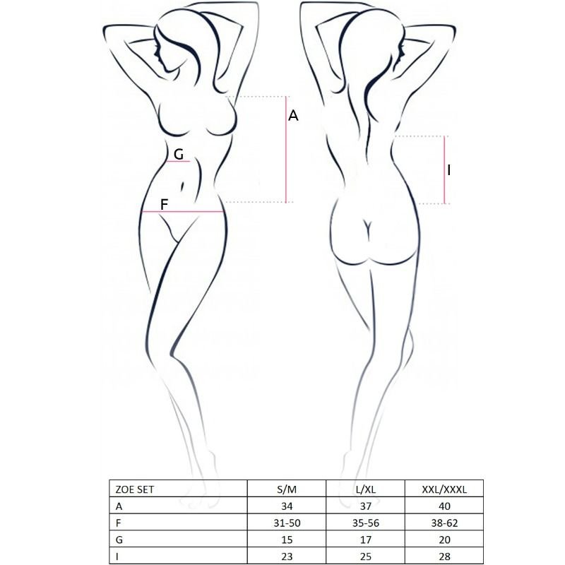 El set de la colección Zoe es un fabuloso conjunto de lencería de diseño espectacularmente sexy con el que te convertirás en una bomba de seducción, fabricado por la prestigiosa marca de lencería Passion